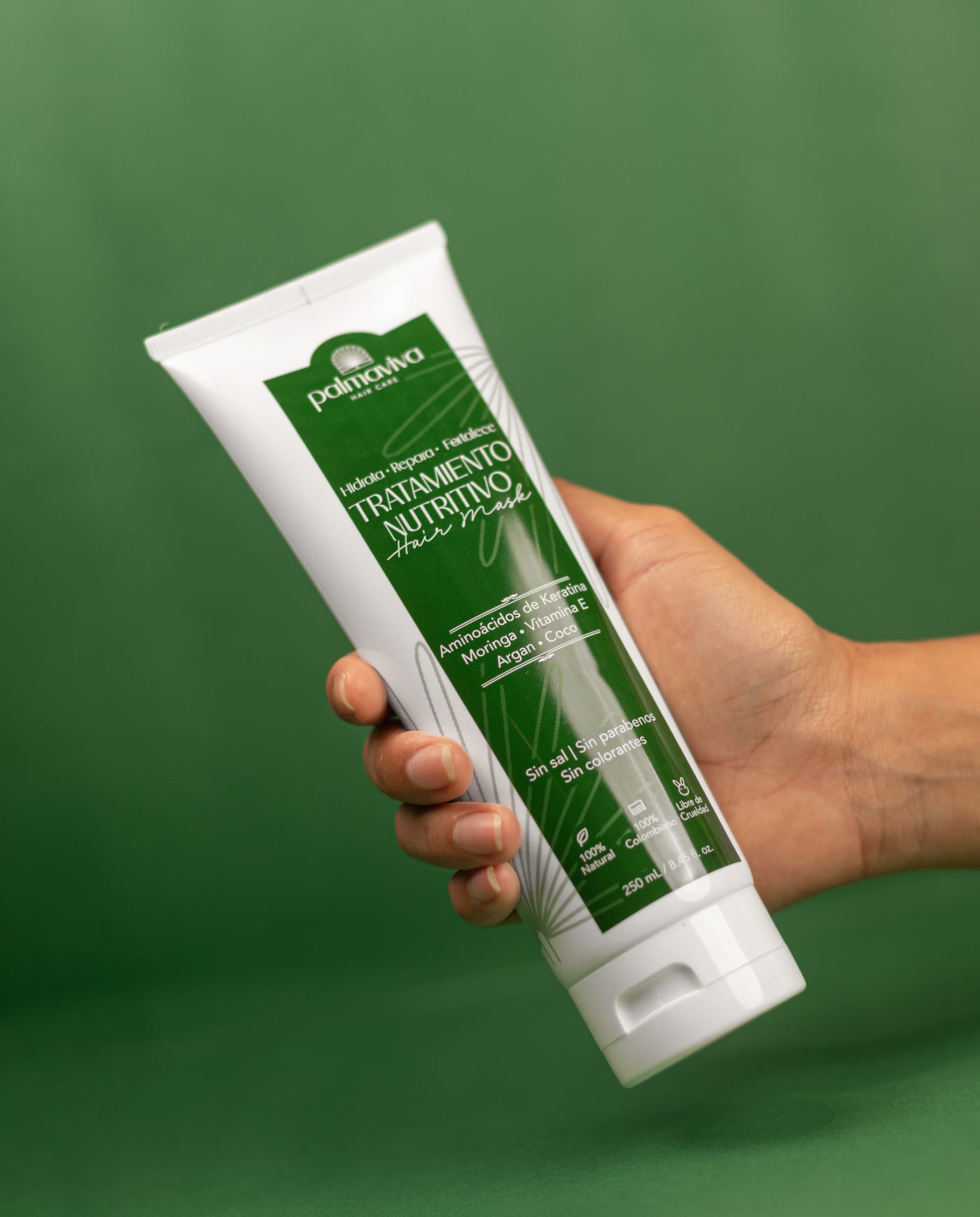 Nuestro tratamiento capilar intensivo ha sido diseñado para revitalizar tu melena, brindándole una nutrición profunda sin comprometer su equilibrio natural. Libre de sal, parabenos y químicos agresivos, su fórmula botánica combina ingredientes de alto rendimiento para restaurar, fortalecer y proteger tu cabello.
